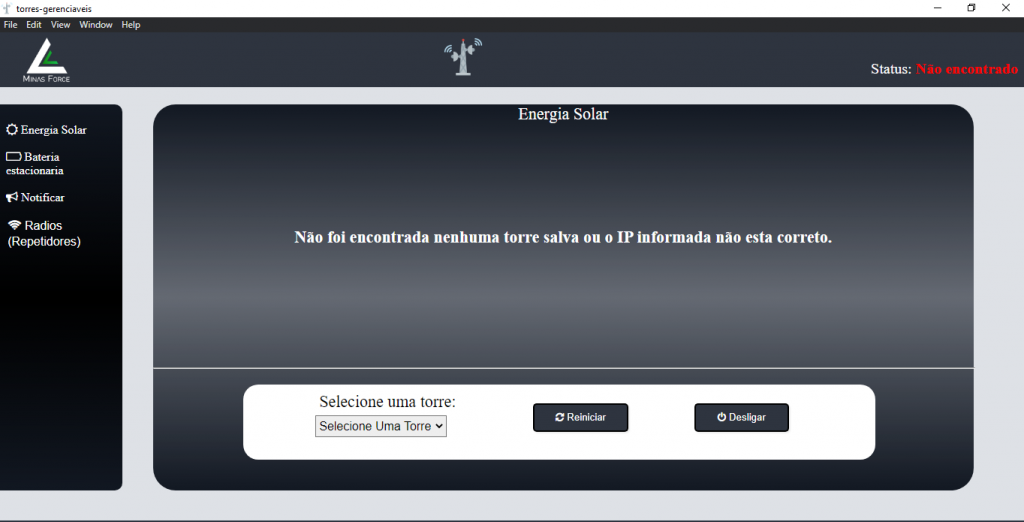 Com o nosso aplicativo e possível Ver Status da torre se está ligada ou desliga e os dados de consumo de energia e também reiniciar e desligar os aparelhos, Torres com Sistema Solar e possível ver Status de energia de entrada e saída, e consumo contando também com a Porcentagem de carga que ainda resta a bateria.